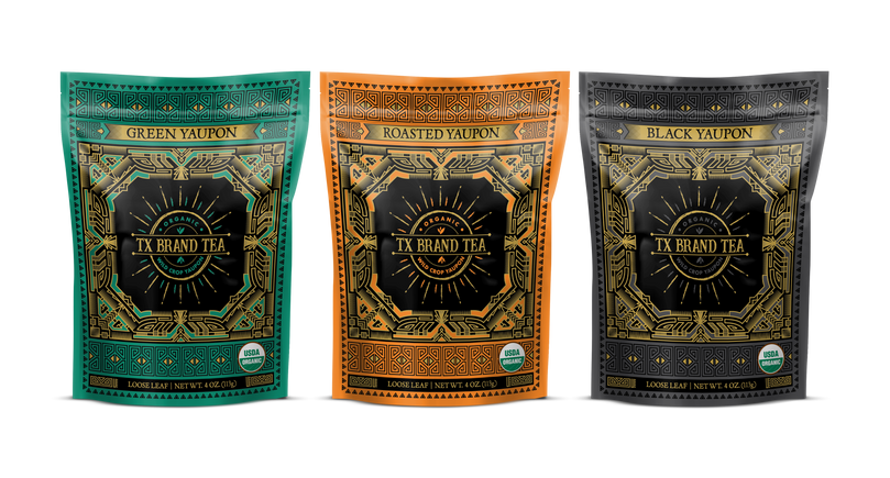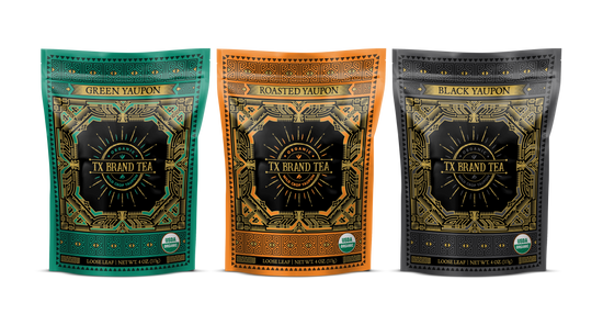 Organic Loose Leaf Yaupon Tea Variety Pack, 4oz Bag of Green Yaupon Tea, Roasted Yaupon Tea & Black Yaupon Tea